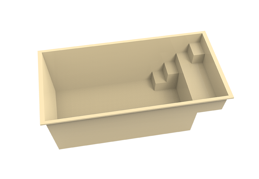 Le design du bassin permet une intégration parfaite dans les environnements minéraux ou végétalisés. Le coloris sable de la coque donne un aspect naturel et chaleureux à l’eau. Avec ses marches intégrées et sa plage immergée, la piscine est aussi belle que fonctionnelle.