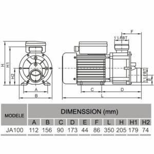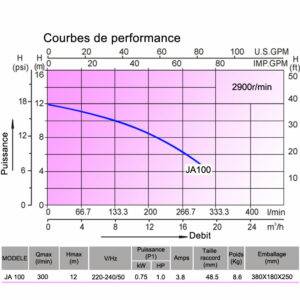 Pompe JA100 Lx Whirlpool (1HP, 750 W) – débit maximal de 300 litres/min pour spa et balnéo.