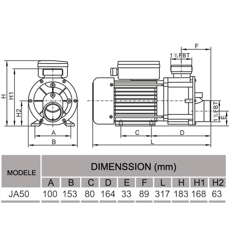Pompe JA50 Lx Whirlpool de filtration 0.5 HP – 370 watts – 180 litres / min