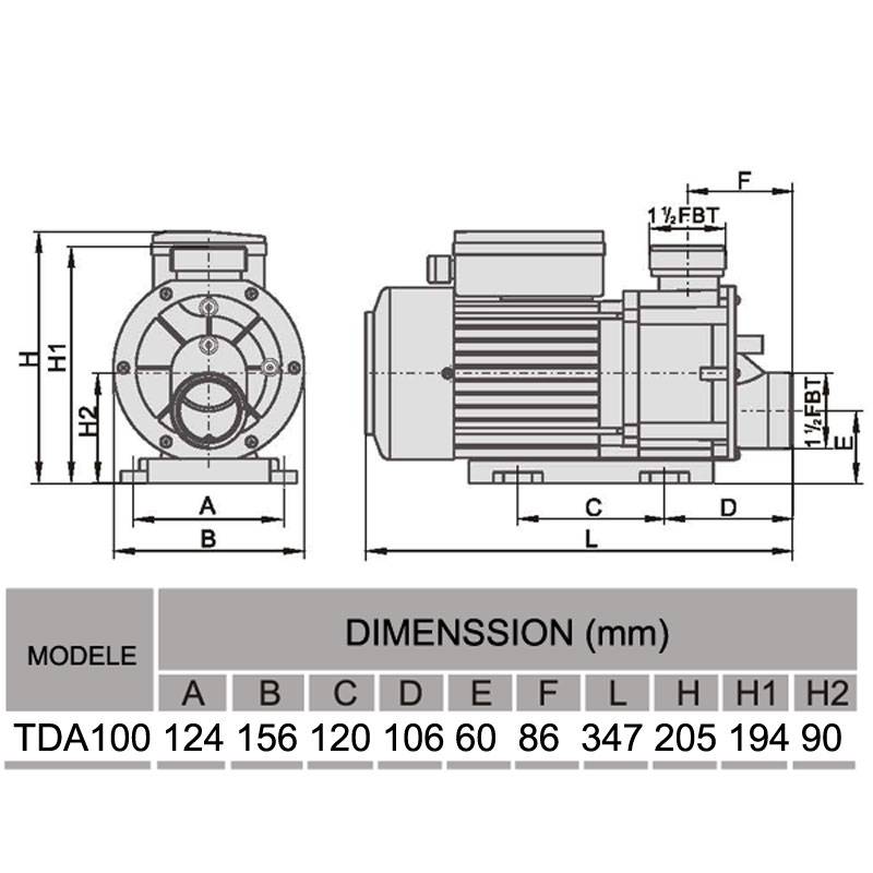 Pompe TDA100 Lx Whirlpool (1HP, 750 W) – débit maximal de 300 litres/min pour spa et balnéo.