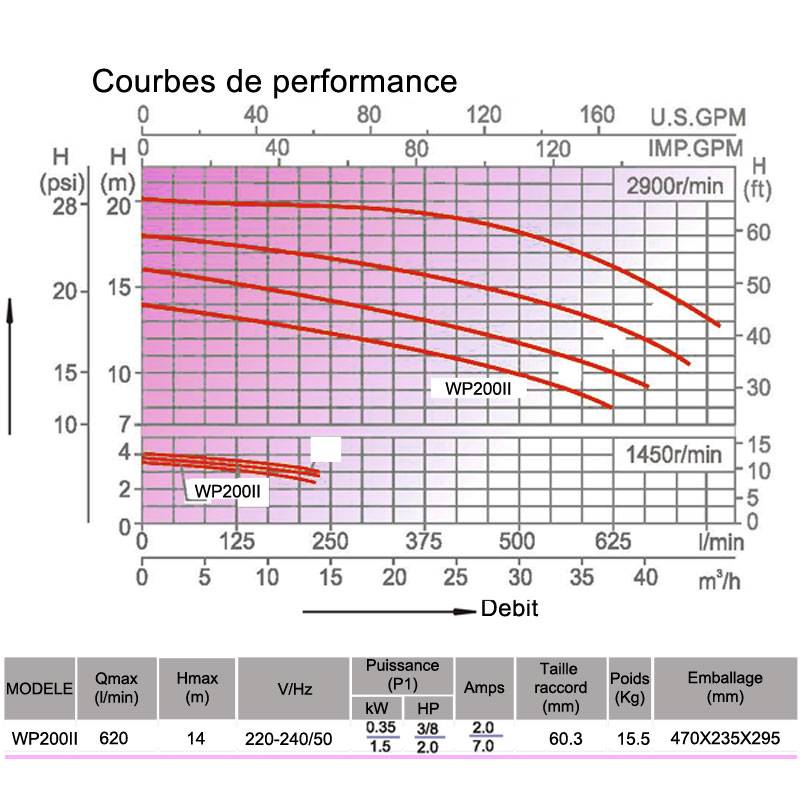 Pompe WP200 Lx Whirlpool (2HP, 1500 W) – débit maximal de 620 litres/min pour spa et balnéo.