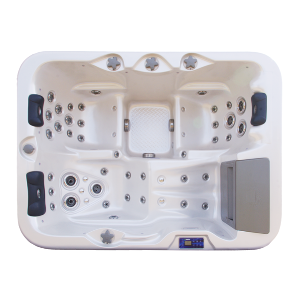 Il est équipé d’une coque acrylique Aristech (USA) et d’une commande de gestion Balboa (USA).