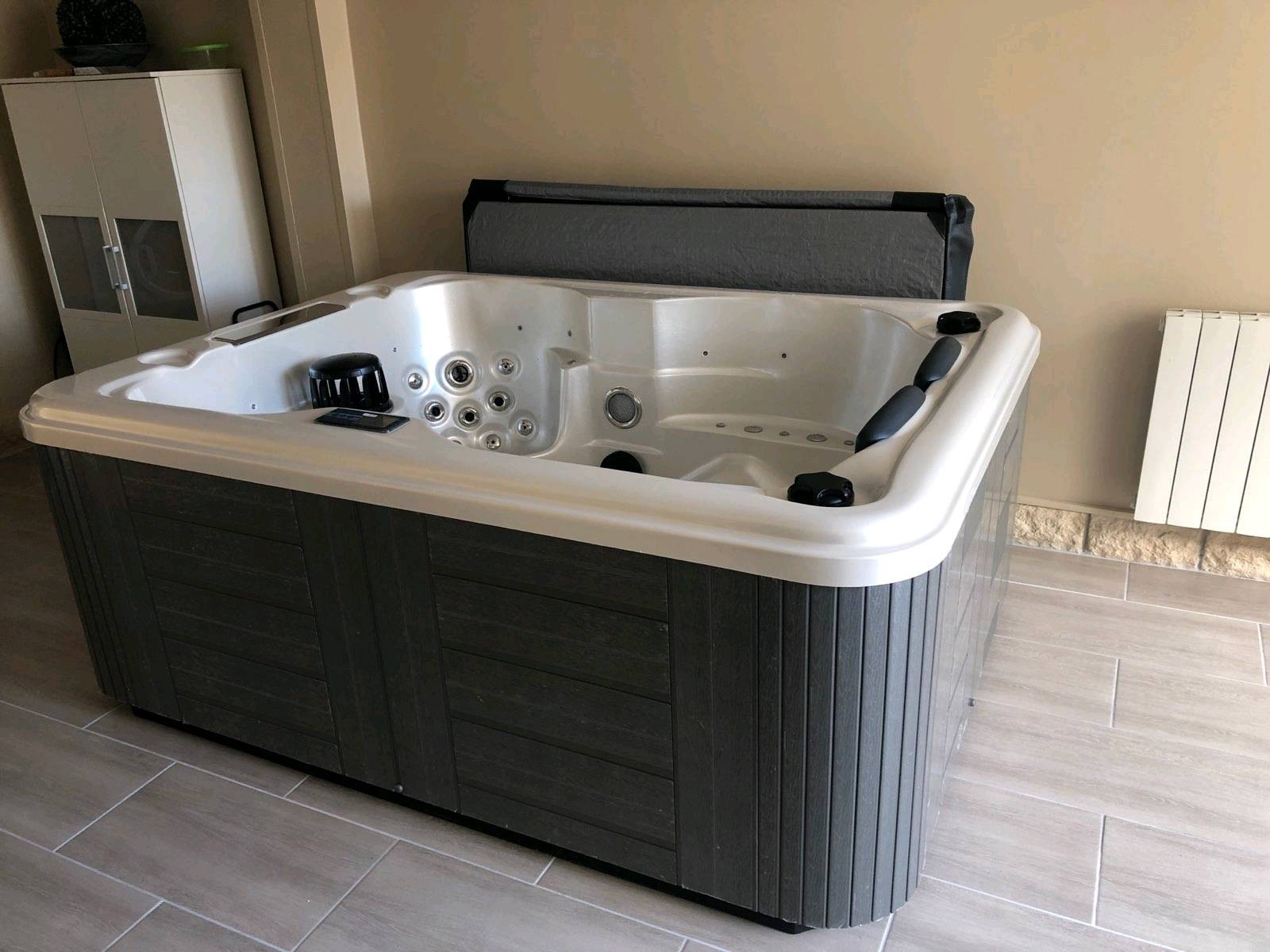 Envie d'un spa ? Ce modèle Caraïbes vous séduira par ces deux places allongées côte à côte et ses deux places assises, c'est un modèle phare de notre collection de par son design et son prix attractif. Ici il a été installé en intérieur à Carry Le Rouet Sur La Côte Bleue dans une pièce dédiée à la détente, il peut également s'accompagner de de nos saunas ou hammams.